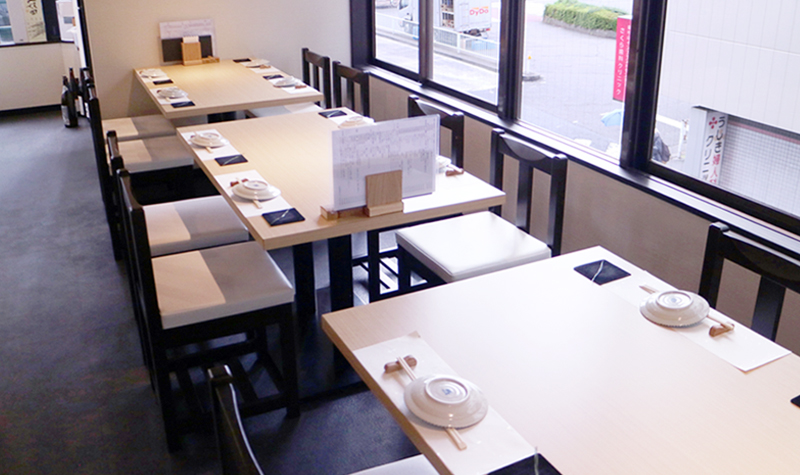 木のテーブルにカウンター、落ち着いた照明、白と黒の椅子。清潔感ある上質な大人の空間です。オープンキッチンが見えるカウンター席は、狭さを感じずゆったりとお過ごしいただけます。